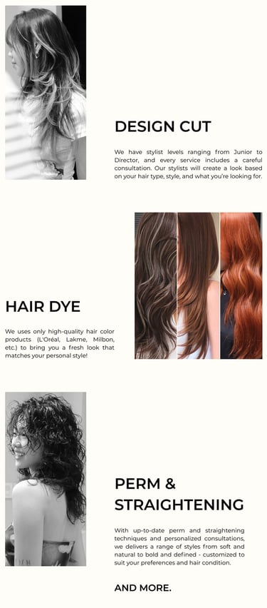 More than a hair salon, we create experiences and style your hair with care and skill made just for you. More than a client, you’re a valued friend we’re always happy to welcome back!