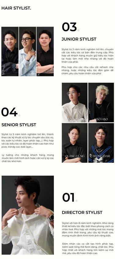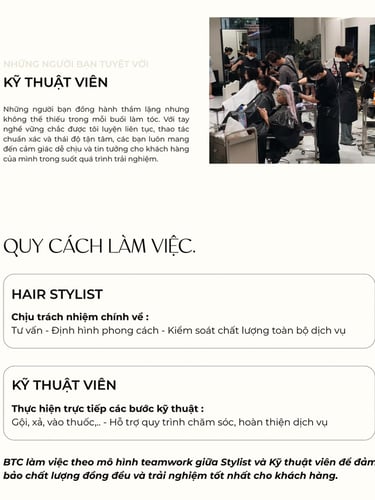 Được dẫn dắt bởi chuyên gia tạo mẫu tóc - Mai Huy Hoàng, với hơn 12 năm kinh nghiệm và sự khắc khe trong kỹ thuật, đội ngũ nhân sự tại Behind The Chair luôn được chọn lọc kỹ càng từ đầu vào, training liên tục và luôn cập nhập các kỹ thuật mới nhằm mang đến cho khách hàng một sản phẩm chất lượng và trải nghiệm tốt nhất!