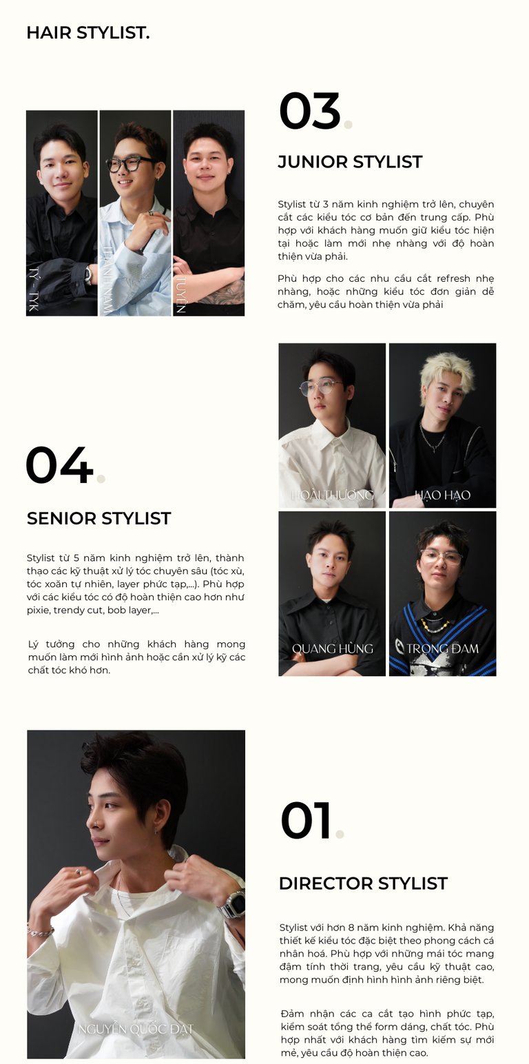 Hoàng luôn lựa chọn những giá trị tốt nhất gửi tới Khách hàng, từ điều cốt lõi là sản phẩm sử dụng tới việc luôn ý thức nâng cao kỹ thuật của bản thân cũng như đội ngũ. Có lẽ vì vậy, NTM.Mai Huy Hoàng đã tạo nên thành công ngày nay với Behind The Chair Hair Studio