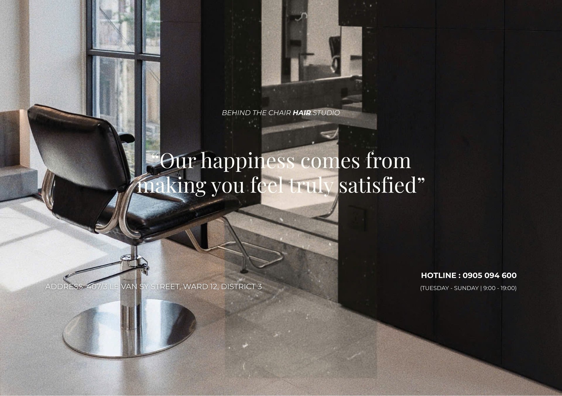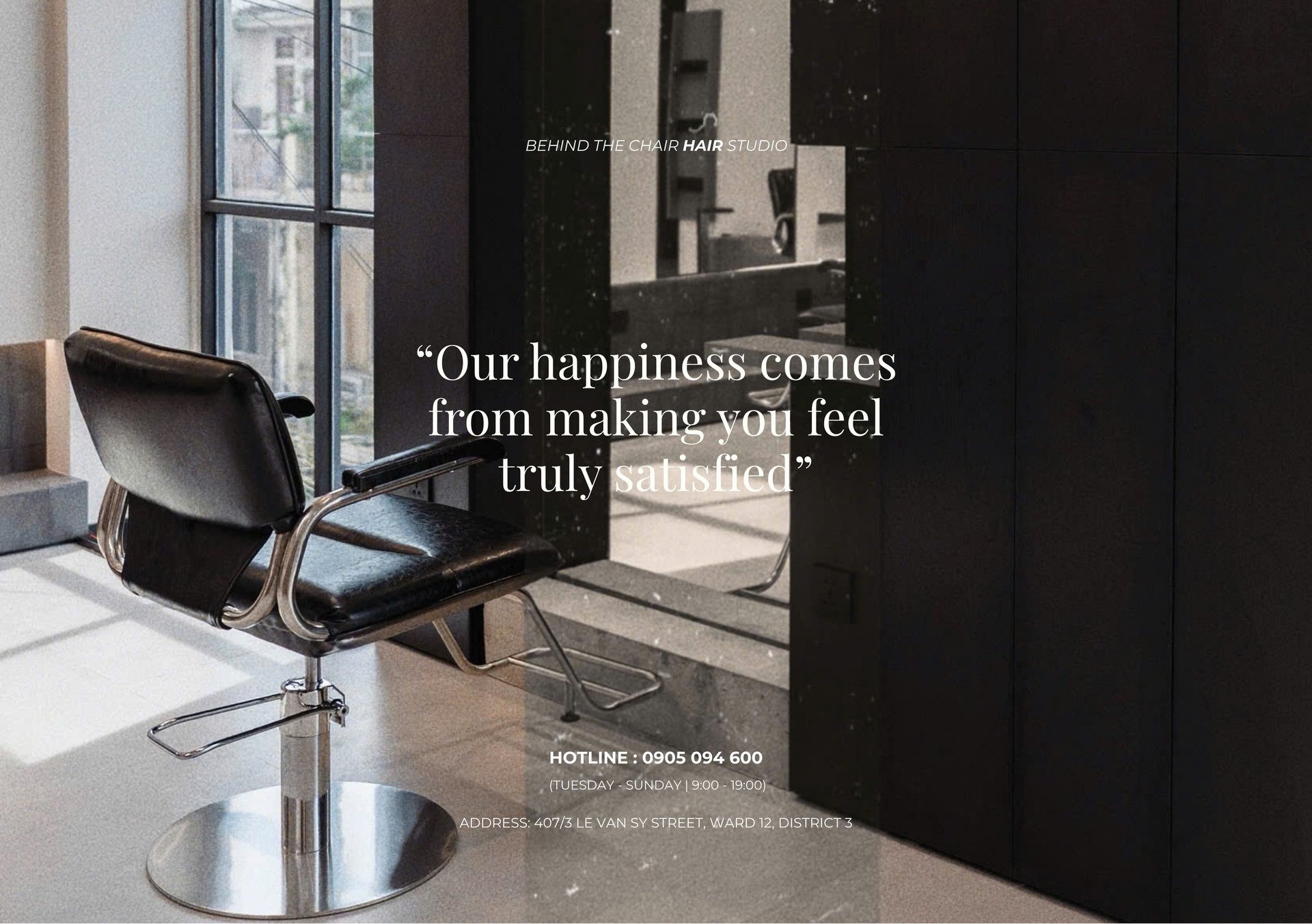 “Behind the chair” reflects our craft philosophy: behind every beautiful hairstyle is a dedicated, experienced, and passionate stylist.